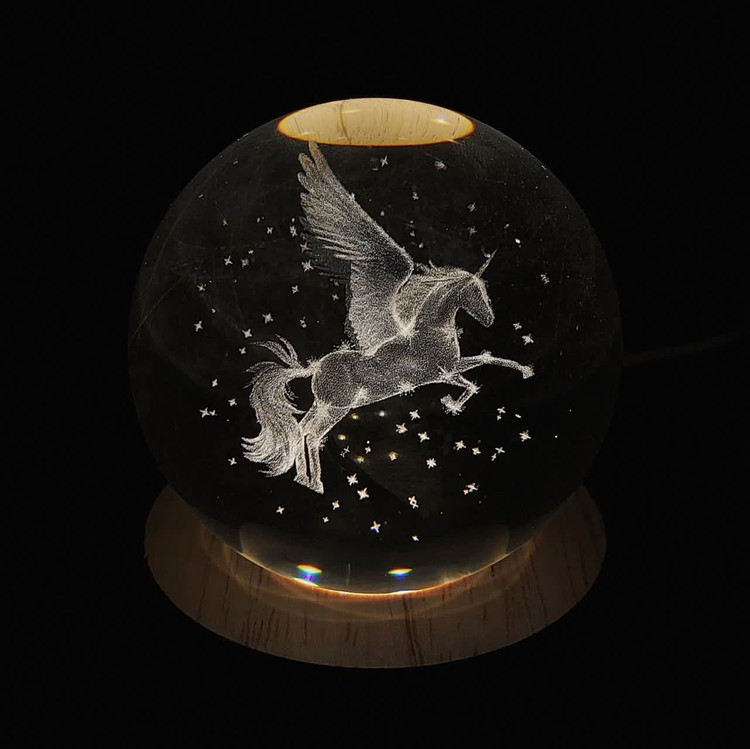 گوی زیبای کریستالی با طرح اسب تک شاخ